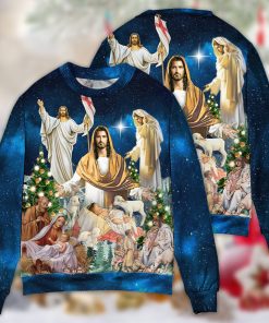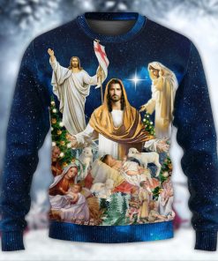 Jesus Christmas Miracle Night Christmas Ugly Sweater, Sweatshirt details