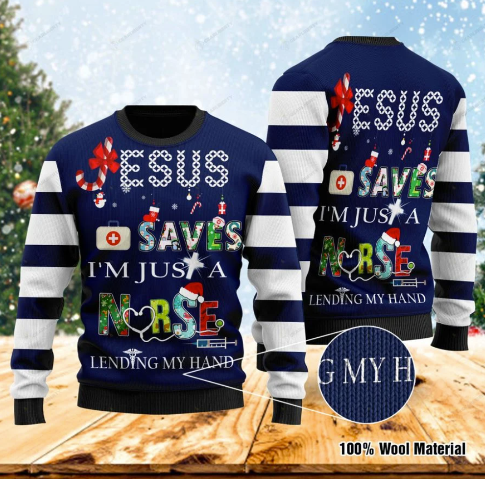 Jesus Saves I’m Just A Nurse Lending My Hand Wood Ugly Christmas Sweater