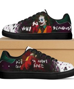 Joker Put On a Happy Face Black Low top Leather Stan Smith Sneaker, Casual Shoes