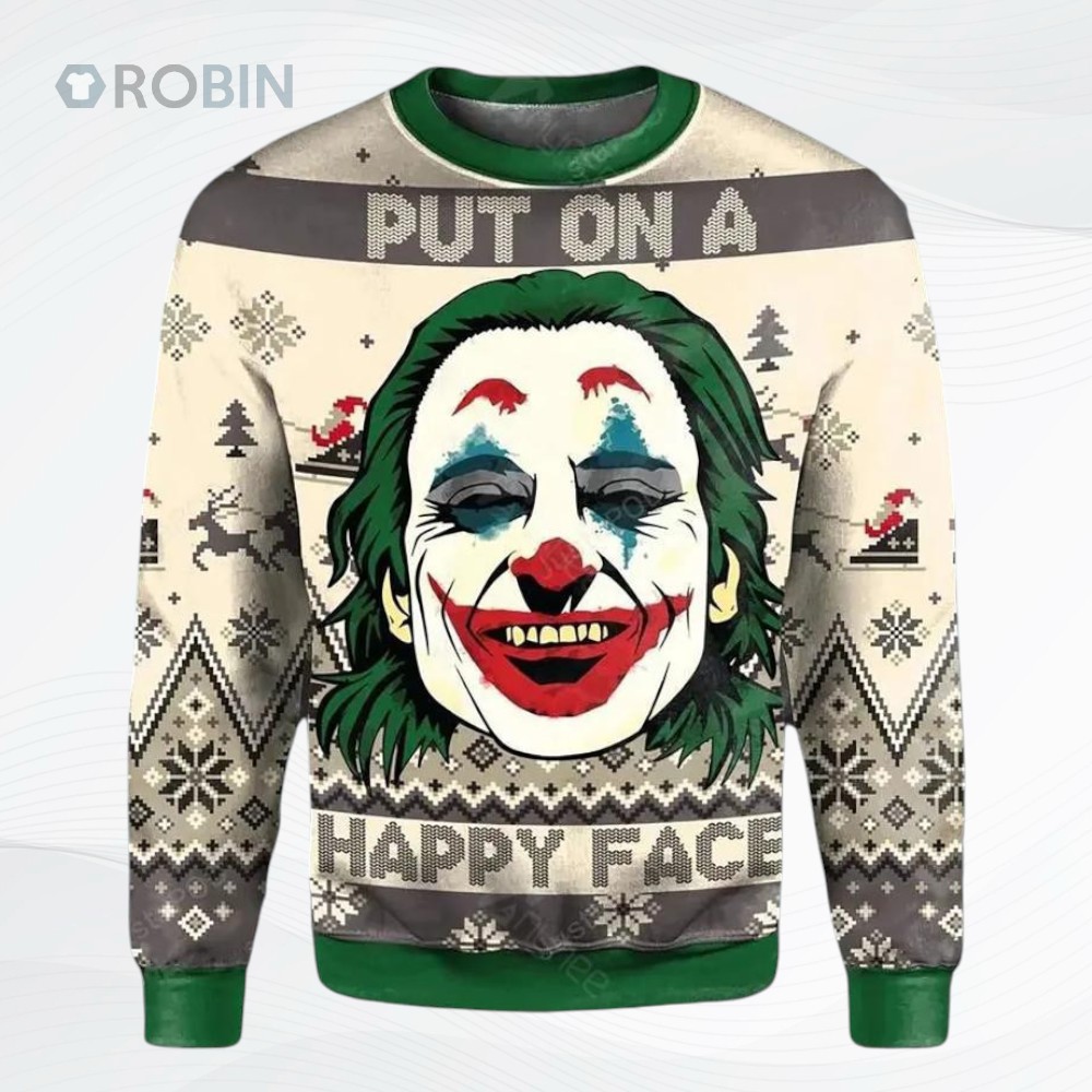 Spread holiday cheer (or chaos!) with this festive sweater! Featuring a certain Clown Prince of Crime, it's the perfect blend of merry and mayhem. Get yours before they're gone! 🤡🎄