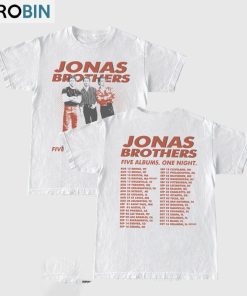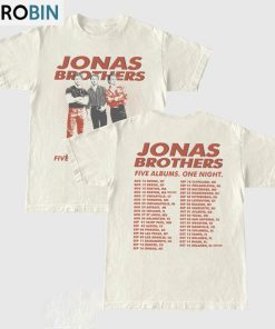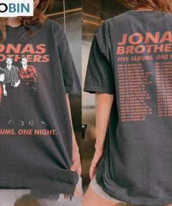 The Jonas Brothers Five Albums One Night Tour Shirt Jonas Brothers 2023 Tour Unisex Hoodie Long Sleeve is a must-have item for any fan of the iconic pop-rock band. This hoodie showcases the Jonas Brothers' five albums and is the perfect way to show your love and support for the band. Made from high-quality materials, this hoodie is comfortable and stylish, making it suitable for everyday wear. With its long sleeves and unisex design, it is a versatile piece that can be worn by both men and women. Get ready to rock out in style with this Jonas Brothers hoodie.