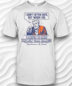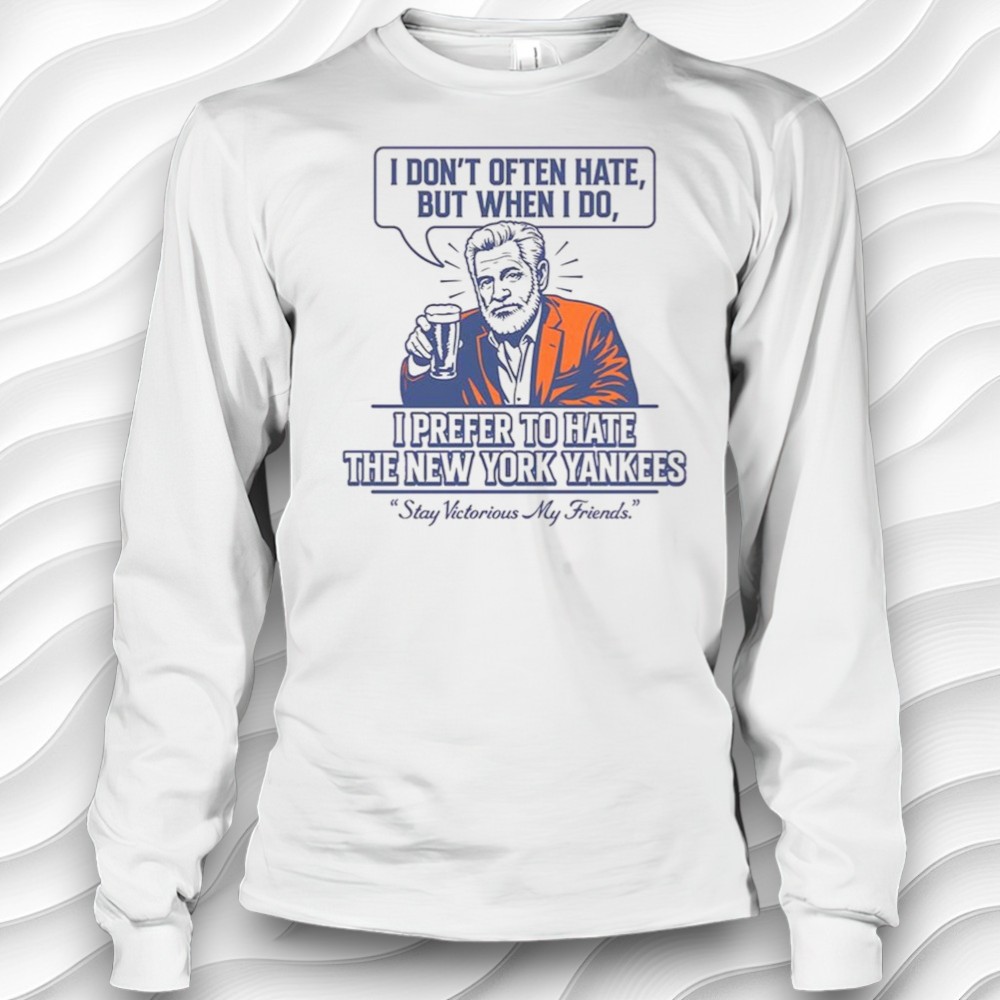 There’s a certain freedom in choosing how you present yourself—a quiet insistence on wearing your humor and loyalty like a badge. The design on this shirt captures that spirit with a touch of rebellion and wit. A vividly illustrated figure, rendered in bold strokes of orange and purple-blue, lifts a glass in a casual salute. His expression is part triumph, part cheeky defiance, perfectly matching the all-caps, outlined text above and below him. A speech bubble adds flavor, framing the tagline in a smooth, contrasting script that softens the bold graphic with a wink. This isn’t a shirt just to show support for the New York Yankees; it’s an attitude statement. Sports fans who appreciate a playful riff on pop culture—those who like to blend their fandom with a spark of personality—will find this particularly appealing. It speaks to those who enjoy the game day excitement but also want their apparel to reflect a more personal, offbeat vibe. Beyond the stadium, it fits effortlessly into casual wear, especially for friends who appreciate humor tied to their favorite team. Whether tossed on for an afternoon with pals or worn as a gift shared among die-hard baseball enthusiasts, the design invites conversation and camaraderie. It’s an apparel choice that celebrates individuality while tipping the cap to a shared love of the Yankees, all wrapped up in a visually striking, funny shirt that stands out without shouting.