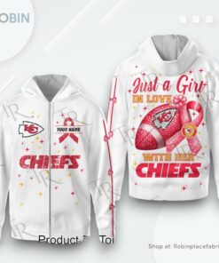 Just A Girl In Love With Her Kansas City Chiefs Pink Cancer AOP Clothing (Hoodie, Sweatshirt, T Shirt)