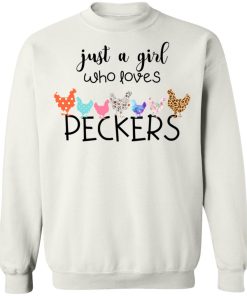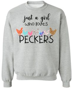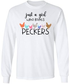 Just A Girl Who Loves Peckers Chickens shirt. Available in t shirt, long sleeve, tank top, hoodie, sweatshirt and multiple color. If you want in another color please contact us. Quality control before delivery. Print: Digital printing, colors won’t fade or peel. The design is printed with new age printing technology. It is printed with a water – soluble and eco – friendly ink. Treat yourself, or make this shirt the perfect gift on birthdays, anniversaries, holidays, or give a gift to friend, yourself, or family, or for no reason at all.