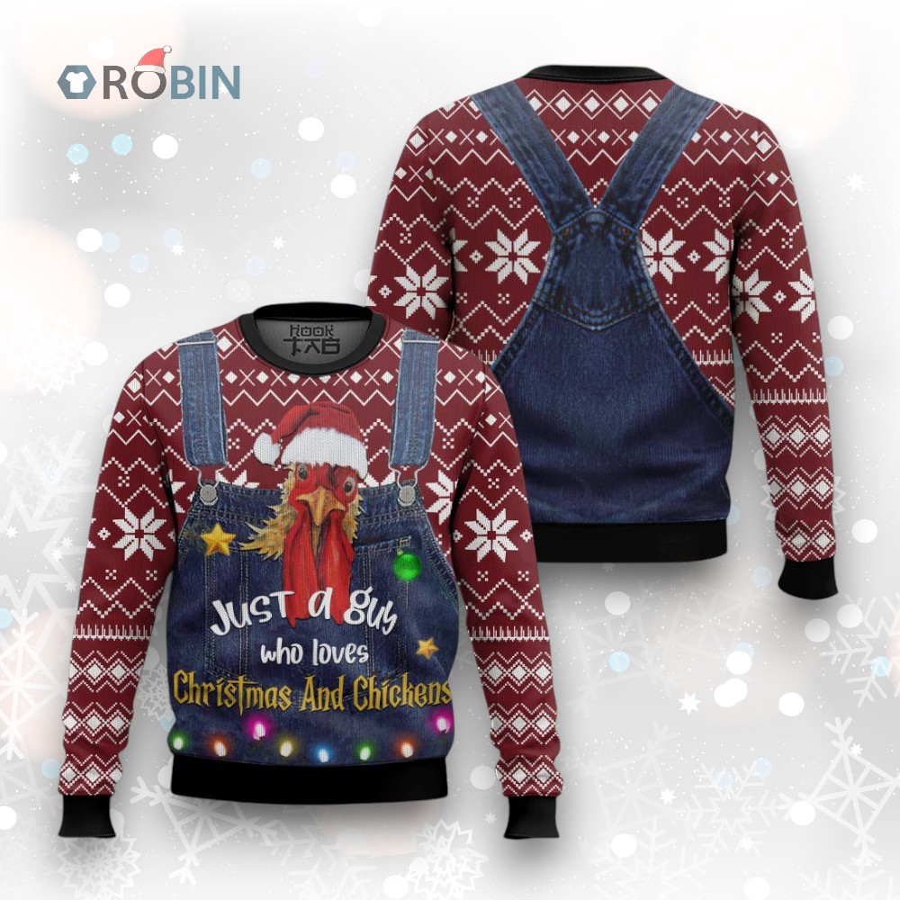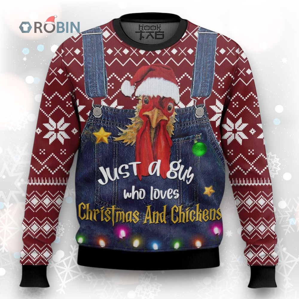 Just A Guy Who Loves Christmas And Chickens Ugly Christmas Sweater