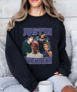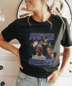 There’s something electric about wearing a piece that feels like a shout-out to a shared moment in time, especially when it captures a pop-icon as iconic as Justin Bieber. This shirt carries the kind of bold, retro energy that turns heads without trying too hard. The collage-style montage blurs the line between nostalgia and fresh pop culture—Justin’s images layered in a way that feels lively and unapologetically fun. The oversized block letters spelling out JUS TIN and BIEBER demand attention, stretching across the fabric in chunky sans-serif with that brilliant purple fill and outline. It’s the kind of type treatment that feels both vintage and modern, playful yet confident—like something you’d spot at a concert or on a street style snap in the heart of a music-loving city. Paired with relaxed jeans and a pair of classic kicks, this Justin Bieber shirt fits seamlessly into casual hangouts or festival lineups. Under a denim jacket or over a hoodie, it’s versatile enough to become a signature fan staple without losing its youthful vibrancy. This shirt is for anyone who wants to wear their fandom proudly but with a sense of cool authenticity. Teenagers discovering their style, young adults who grew up alongside Bieber’s rise, or anyone who sees music as a part of their identity will appreciate what this gives off: a fun pop culture moment wrapped in bold graphics and timeless attitude. It’s a symbol, not just of fandom, but of youthful energy ready to burst out in color.