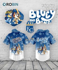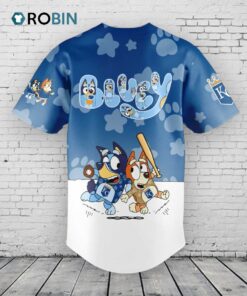 Batter up! Get ready for some baseball fun with this adorable Bluey and Bingo inspired jersey! Perfect for young Royals fans who love the game and the Heeler family. Show your team spirit in a unique and playful way!