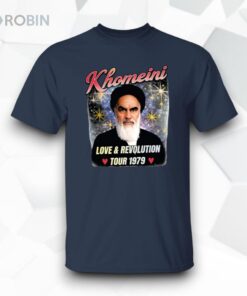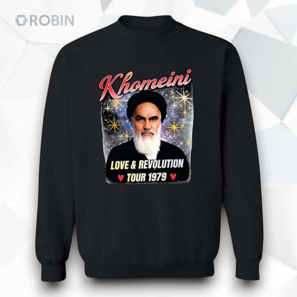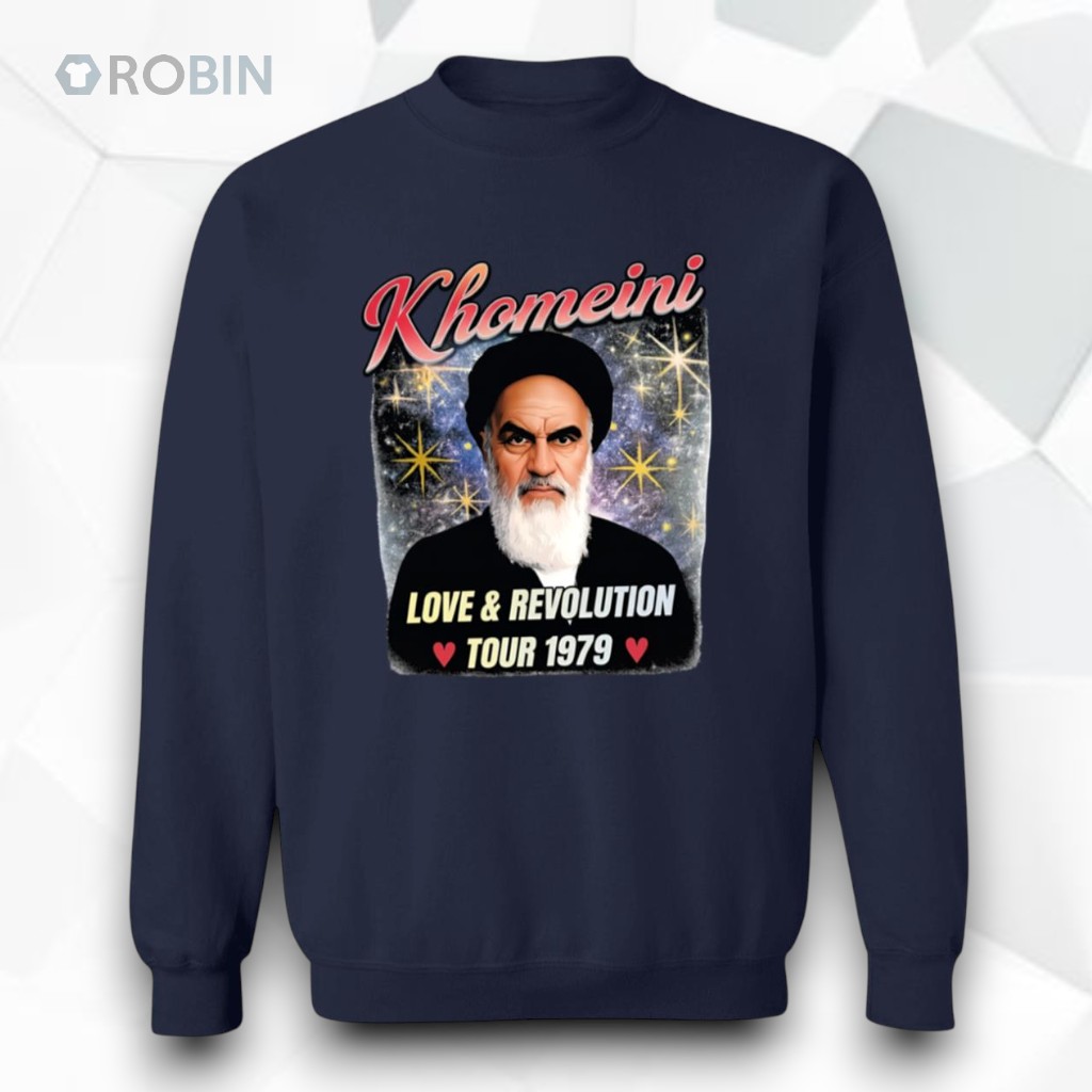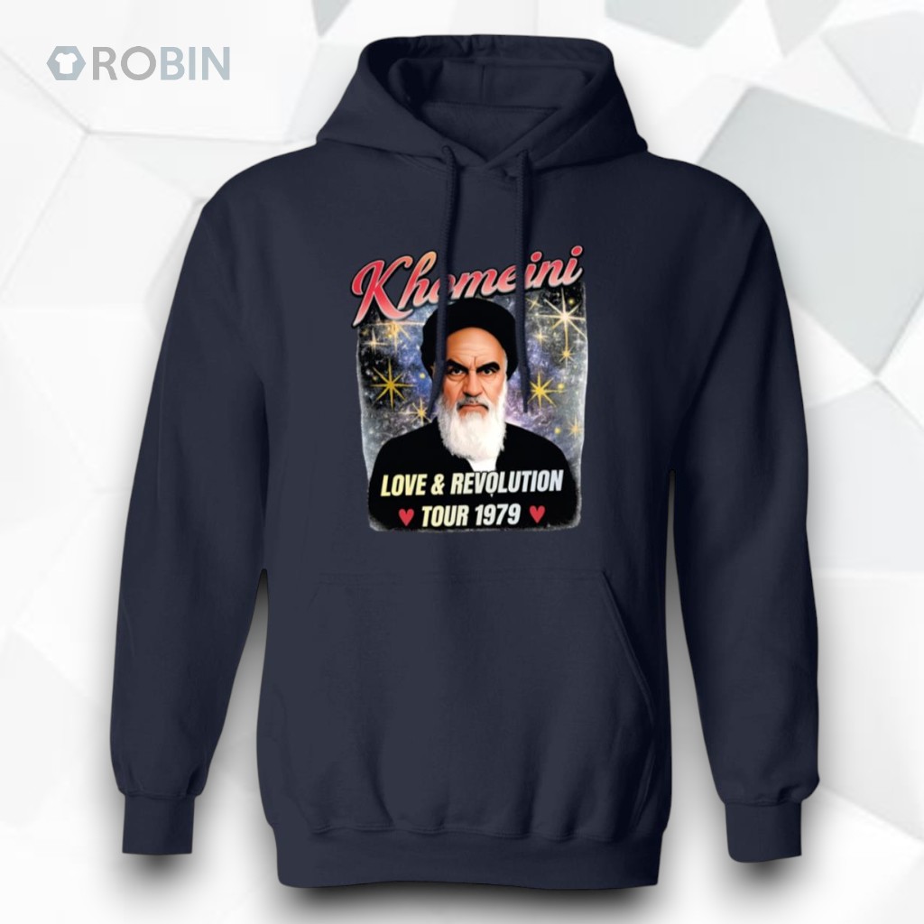 There’s something striking about clothing that channels a specific moment in history while speaking to a current mindset. This hoodie captures that essence through its retro propaganda poster style, combining vivid colors with a dramatic, almost militant mood. The portrait of a bearded man takes center stage, set against a swirling cosmic backdrop dotted with stars, giving it a timeless, almost otherworldly presence. Above, bold cursive lettering announces the theme with a confident flourish, contrasted thoughtfully by a strong sans-serif subtitle framed in a banner below. Small heart icons add an unexpected layer of warmth to a piece otherwise steeped in revolutionary energy. Graphic details like these are bound to resonate beyond surface aesthetics. People drawn to the mix of nostalgia and political symbolism could find this hoodie an extension of their passion. It’s well suited to those who appreciate the visual power of protest art, those who spend time at demonstrations, or history buffs who recognize the spirit behind the design. The vibe suggests wearers who don’t shy away from making a statement that blends art, activism, and identity. For casual days, pairing it with dark denim or rugged cargo pants keeps the look grounded and approachable, while sturdy boots or sneakers maintain comfort through cooler weather. Layered beneath an unstructured jacket, it moves effortlessly from everyday wear to gatherings where politics and style intersect. As a gift, it could connect with anyone fascinated by revolutionary imagery or collectors who admire historical propaganda art. The Khomeini Love And Revolution Tour 1979 Shirt offers more than just a graphic; it’s a visual nod to a fervent chapter of history, designed for those who carry that energy forward.