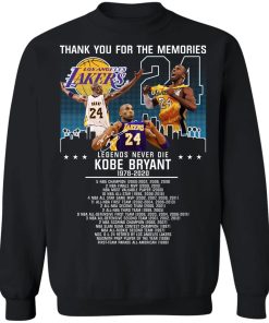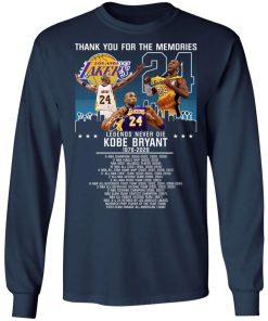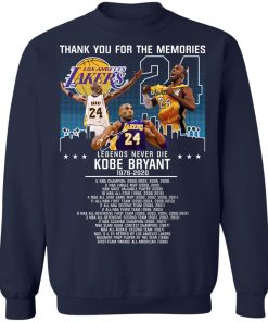 Kobe Bryant 1978-2020 Thank you for the memories Legends never die shirt