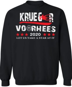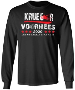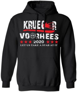 Krueger Voorhees 2020 Let Us Take A Stab At It Shirt. Available in t shirt, long sleeve, tank top, hoodie, sweatshirt and multiple color. If you want in another color please contact us. Quality control before delivery. Print: Digital printing, colors won’t fade or peel. The design is printed with new age printing technology. It is printed with a water – soluble and eco – friendly ink. Treat yourself, or make this shirt the perfect gift n birthdays, anniversaries, holidays, or give a gift to friend, yourself, or family, or for no reason at all.