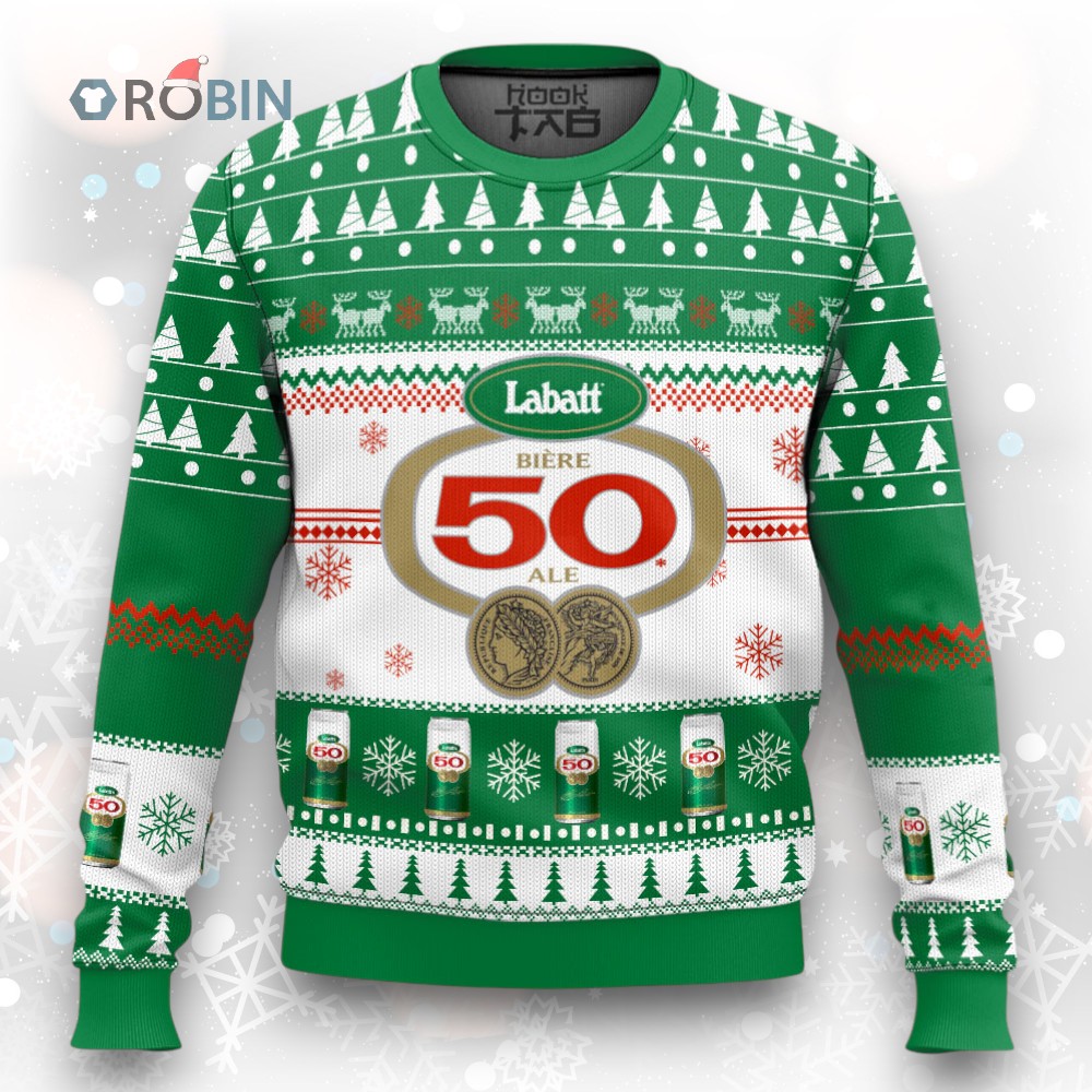 Get into the festive spirit with the Labatt 50 Ugly Christmas Sweater! Featuring a playful design with iconic Labatt 50 logos, snowflakes, and Christmas trees, this sweater is perfect for holiday celebrations. Embrace the holiday cheer with style and humor. Ideal for Christmas parties and cozy gatherings.
