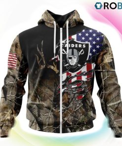 Las Vegas Raiders Hunting Camo US Flag Style 3D Hoodie, Las Vegas Raiders Gifts features