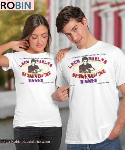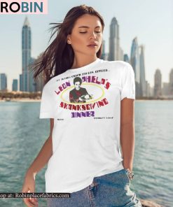 The Leon Phelps Shanksgiving Dinner Shirt exudes a festive and playful vibe with its vibrant colors and humorous design. The shirt features a comical illustration of a Thanksgiving turkey wearing sunglasses and striking a pose, adding a touch of whimsy to the holiday season. The shirt is perfect for adding a pop of fun to a Thanksgiving gathering or as a conversation starter at any festive event. Its comfortable fabric and eye-catching design make it a must-have for those looking to add a dash of humor to their holiday wardrobe.