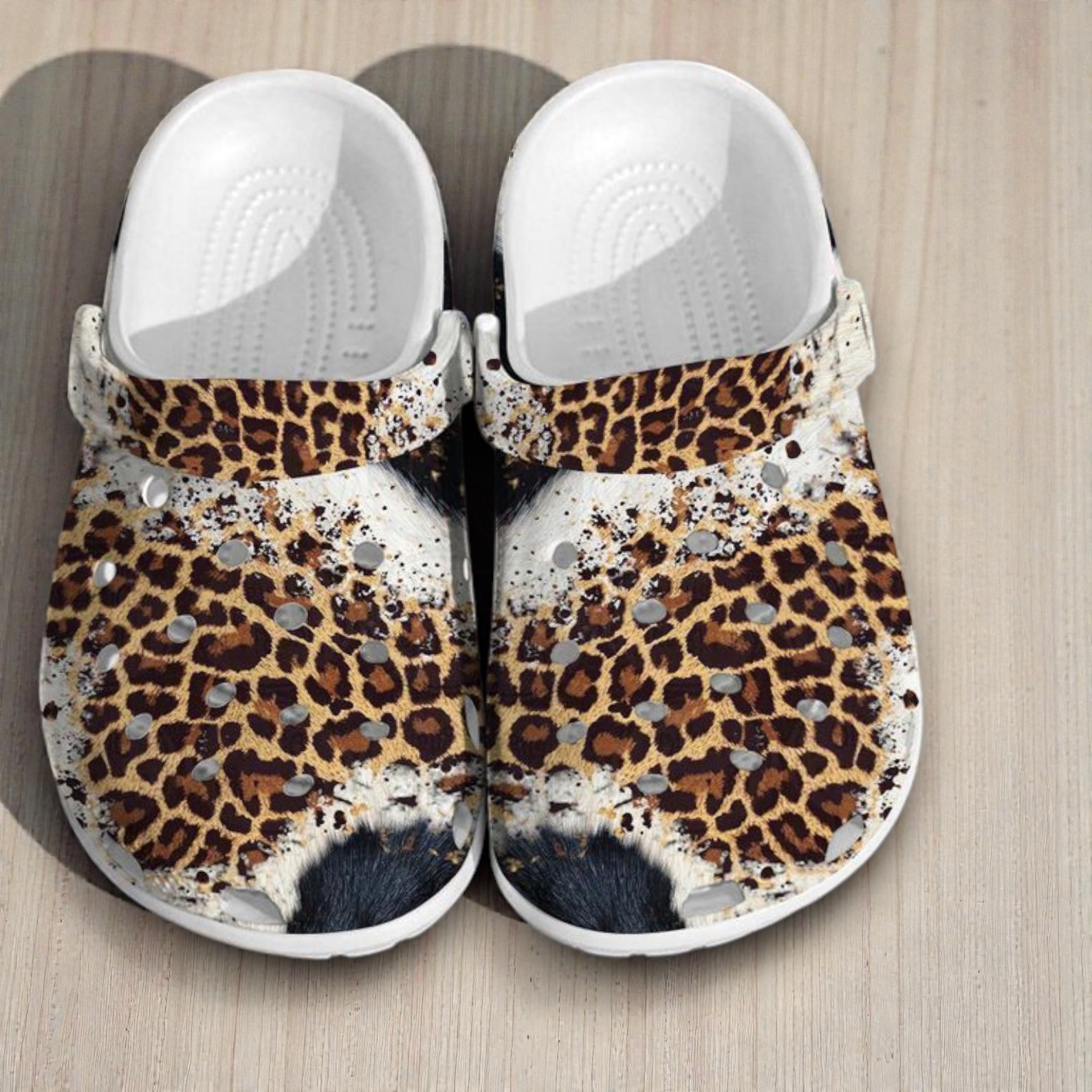 If you usually can't decide between classic leopard spots or western cow hide, these Crocs give you both in one pair. The print is designed to look exactly like real, textured animal hair, starting with a bold leopard pattern near the strap and transitioning into a black and white cow print at the toes. It’s a fun, country-inspired design that puts a totally different spin on your standard everyday footwear.