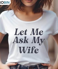 The Let Me Ask My Wife shirt makes a great gift for any husband who needs time to think before making decisions. Made with a soft and comfortable fabric, this shirt features a whimsical illustration asking consent before making a decision. The shirt is black and comes in sizes ranging from small to extra large. The Let Me Ask My Wife t-shirt is the perfect way to show off your mutual respect for each other, and for your commitment to making thoughtful decisions. It's a sweet and humorous way to show you care!