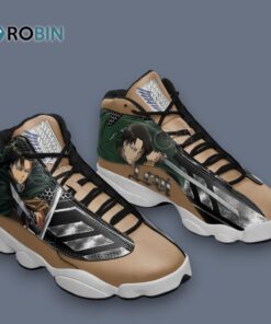 Gear up, cadets! ⚔️🔥 These Jordan 13 sneakers are a Titan-sized tribute to humanity's strongest soldier. Featuring a custom AOT print, these kicks are a must-have for any Survey Corps member. Step into style and show off your love for Attack on Titan! Get yours now!