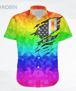 Show your colors with this vibrant Hawaiian shirt! Featuring a unique blend of rainbow polygonal design and American flag inside Hawaii Aloha Shirt. Perfect for Pride celebrations or adding a splash of fun to your wardrobe. Get yours today and spread the Aloha spirit!