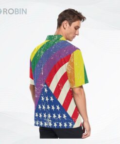 Show your allyship in style! Rock this vibrant Hawaiian shirt with its bold rainbow and American flag design. Perfect for beach days, backyard BBQs, or just spreading good vibes. Comfortable, eye-catching, and a statement of support! Grab yours now and let your colors shine!