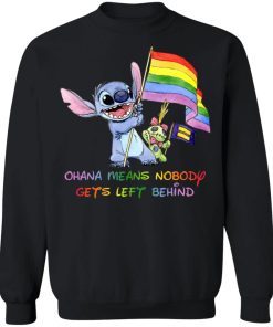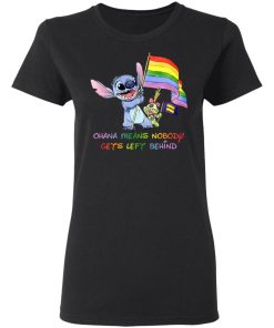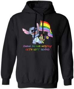 Lgbt Stitch Ohana Means Nobody Gets Left Behind shirt. Available in t shirt, long sleeve, tank top, hoodie, sweatshirt and multiple color. If you want in another color please contact us. Quality control before delivery. Print: Digital printing, colors won’t fade or peel. The design is printed with new age printing technology. It is printed with a water – soluble and eco – friendly ink. Treat yourself, or make this shirt the perfect gift on birthdays, anniversaries, holidays, or give a gift to friend, yourself, or family, or for no reason at all.