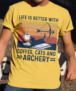 Life Is Better With Coffee Cat And Archery T Shirt.