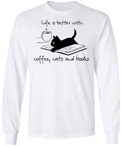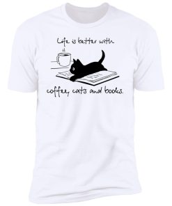 Life is better with coffee cats and books shirts. Buy it now, from $19.99 and $3.99 shipping. This shirt available in t shirt, long sleeve, hoodie and multiple color.