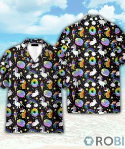 Life Is Better With Unicorn And Donuts Hawaiian Shirt features