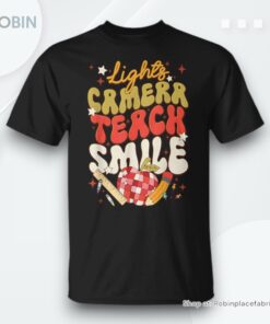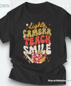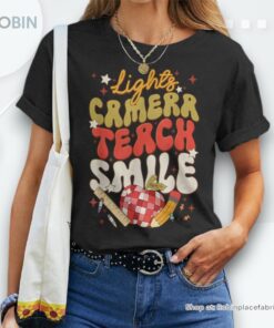 Are you a teacher who loves to inspire and educate while looking stylish and comfortable? The Lights Camera Teach Smile Teacher Unisex Shirt is the perfect addition to your wardrobe. Made from high-quality materials, this shirt is designed to provide both comfort and style. With a fun and unique design, you'll be sure to stand out in the classroom. Show your passion for teaching with this statement piece that is sure to put a smile on your face every time you wear it. Step into the spotlight with the Lights Camera Teach Smile Teacher Unisex Shirt and show off your love for teaching in style.