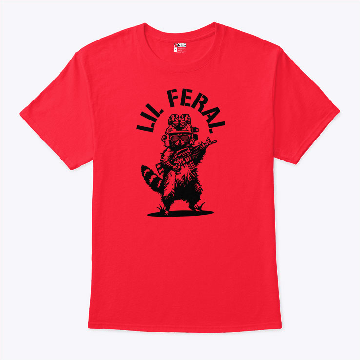 A sharp black raccoon stares out from the center of this shirt, goggles perched defiantly on its forehead like an emblem of mischief and daring. The illustration channels a retro-graphic style, mixing playful cartoon energy with a rebellious edge that feels unmistakably streetwise. Above the raccoon's head, “LIL FERAL” arcs boldly in uppercase letters, each character clean and confident, echoing the shirt’s attitude with a no-nonsense graphic punch. This shirt doesn’t just wear a design—it wears an attitude. The artwork captures a wild spirit that’s both fun and unapologetic, perfect for those who embrace their own blend of humor and edge. Whether layered under a denim jacket or paired with casual streetwear staples, it projects a vibe that’s restless, youthful, and a little rough around the edges. Fans of quirky animal heroes, pranksters at heart, or anyone who finds joy in unexpected, lively graphics would find a genuine connection here. It’s a fitting choice for everyday outfits that refuse to blend into the background, or a thoughtful gift for someone who appreciates bold, character-driven design without pretense. The lil feral raccoon shirt speaks to those comfortable standing out—those who know that a little wildness goes a long way.