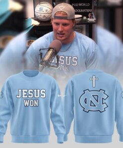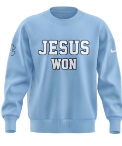 Rep your Tar Heels faith! ✝️ Celebrate Carolina football and the ultimate victory with our exclusive "Jesus Won" sweatshirt. Perfect for game day or showing your love for UNC and your unwavering belief. Get yours before they're gone! Go Heels! 💙