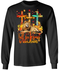 Lion and Jesus cross Fall for Jesus he never leaves shirs. Buy it now, from $19.99 and $3.99 shipping. This shirt available in t shirt, long sleeve, hoodie and multiple color.