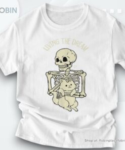 Step into the enchanting fusion of whimsy and spookiness with our latest Halloween apparel, designed to captivate your festive spirit and unique style. Featuring a skeletal embrace and a heartwarming kitty, this shirt is the perfect blend of eerie charm and adorable flair. Whether you’re attending a Halloween party, trick-or-treating, or simply embracing the season, this shirt promises to make you stand out and express your love for all things delightful and macabre. Don't miss out on this limited-edition piece that brings dreams—and some delightful frights—to life!