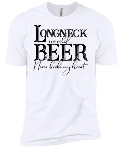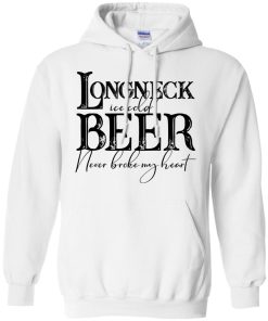 Longneck ice cold beer never broke my heart hoodie, t shirt