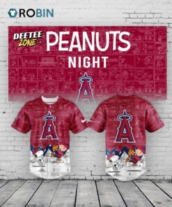 Celebrate the Halos and the timeless charm of Peanuts! This baseball jersey shirt commemorates 75 years of the Los Angeles team with a fun, nostalgic twist. A must-have for any Angels fan who loves a bit of classic cartoon fun. Get yours today and show off your team spirit!