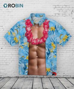 Rep your squad in style! This Chargers-themed Hawaiian shirt is a total conversation starter. Rock the team colors with a unique chest illusion design. Perfect for game day or any sunny occasion. Get yours now! ⚡️