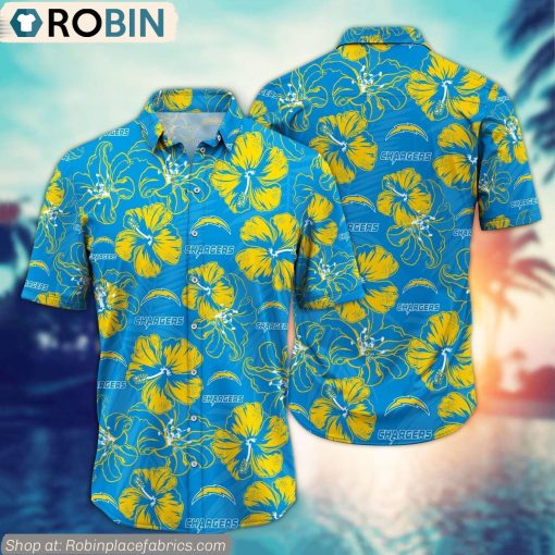 Los Angeles Chargers Hibiscus Tropical Pattern NFL Hawaiian Shirt details