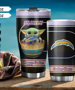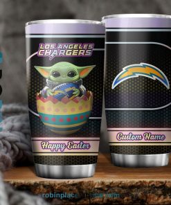 Los Angeles Chargers NFL Baby Yoda Happy Easter Custom Name Tumblers Cup