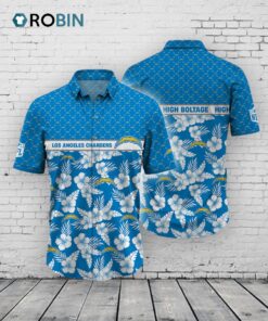 Rep Chargers style with this tropical vibe! This vibrant Hawaiian shirt reps those iconic colors with a cool palm leaf design. Perfect for game days or soaking up the sun. A fun twist on chargers uniforms, showing off your team spirit in style.