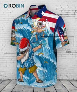 Hang loose, Bolts fans! Get ready to ride the wave this holiday season with this festive gear. Santa's traded his sleigh for a surfboard, decked out in Chargers colors. Perfect for beach days, game days, or spreading holiday cheer. Grab yours and catch some serious holiday vibes!