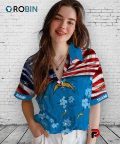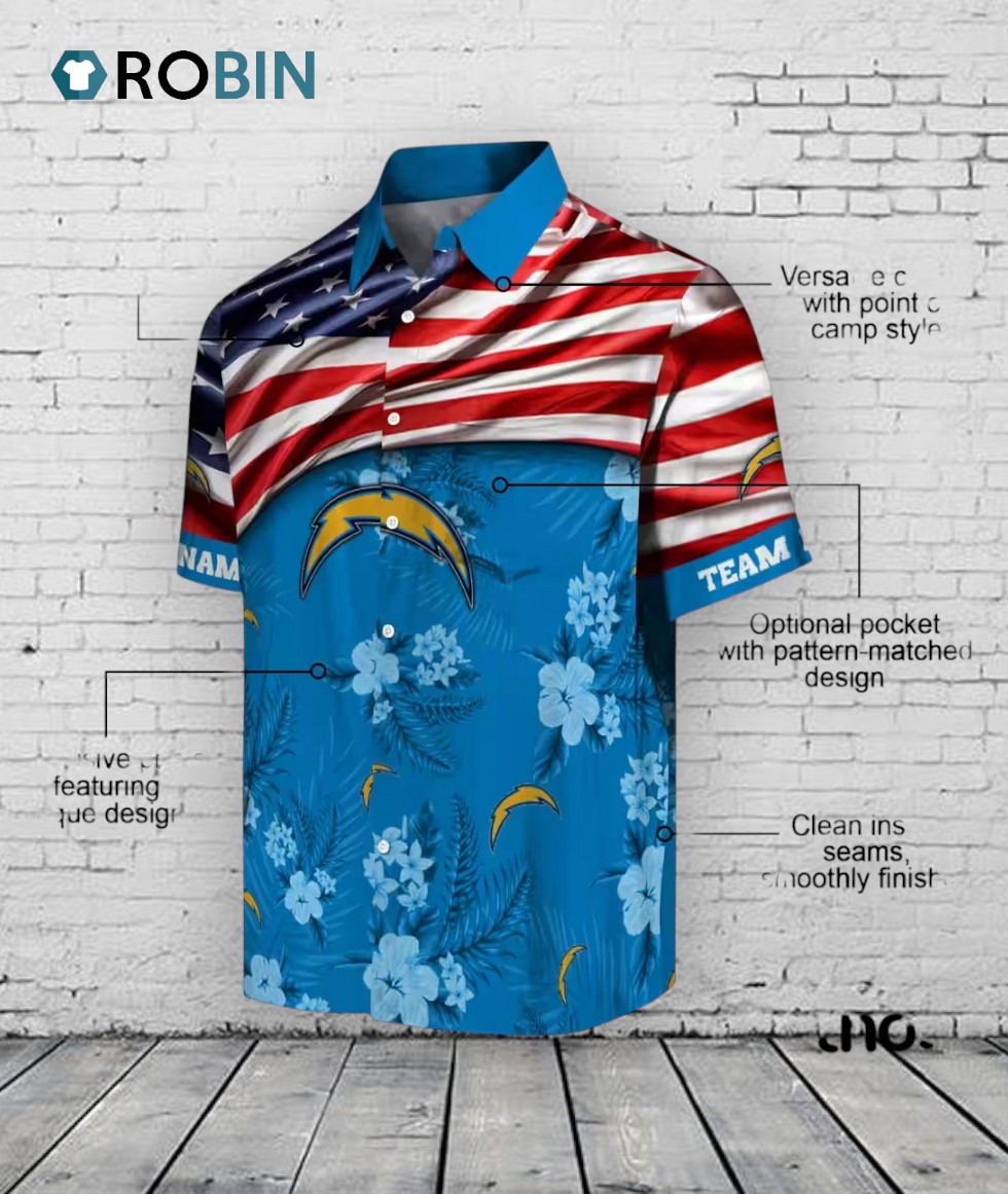 Rep your Chargers with this unique Hawaiian shirt! Featuring the iconic US flag blended with vibrant hibiscus flowers, it's the perfect way to show your team spirit in style. A must-have for any Los Angeles Chargers fan heading to a tailgate or just soaking up the summer vibes!