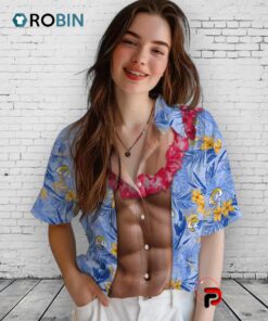 Rep your Rams in a whole new way! This Hawaiian shirt gives the illusion of a chiseled chest, perfect for game day or any sunny occasion. Show off your team pride with a fun and unique look. Get yours now and be the envy of every Rams fan! 🏈🌴