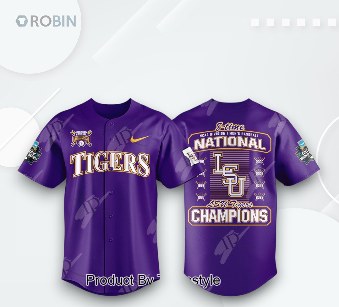 LSU Tigers 8 Time NCAA Division I Men's Baseball National Champions Limited Edition Baseball Jersey features