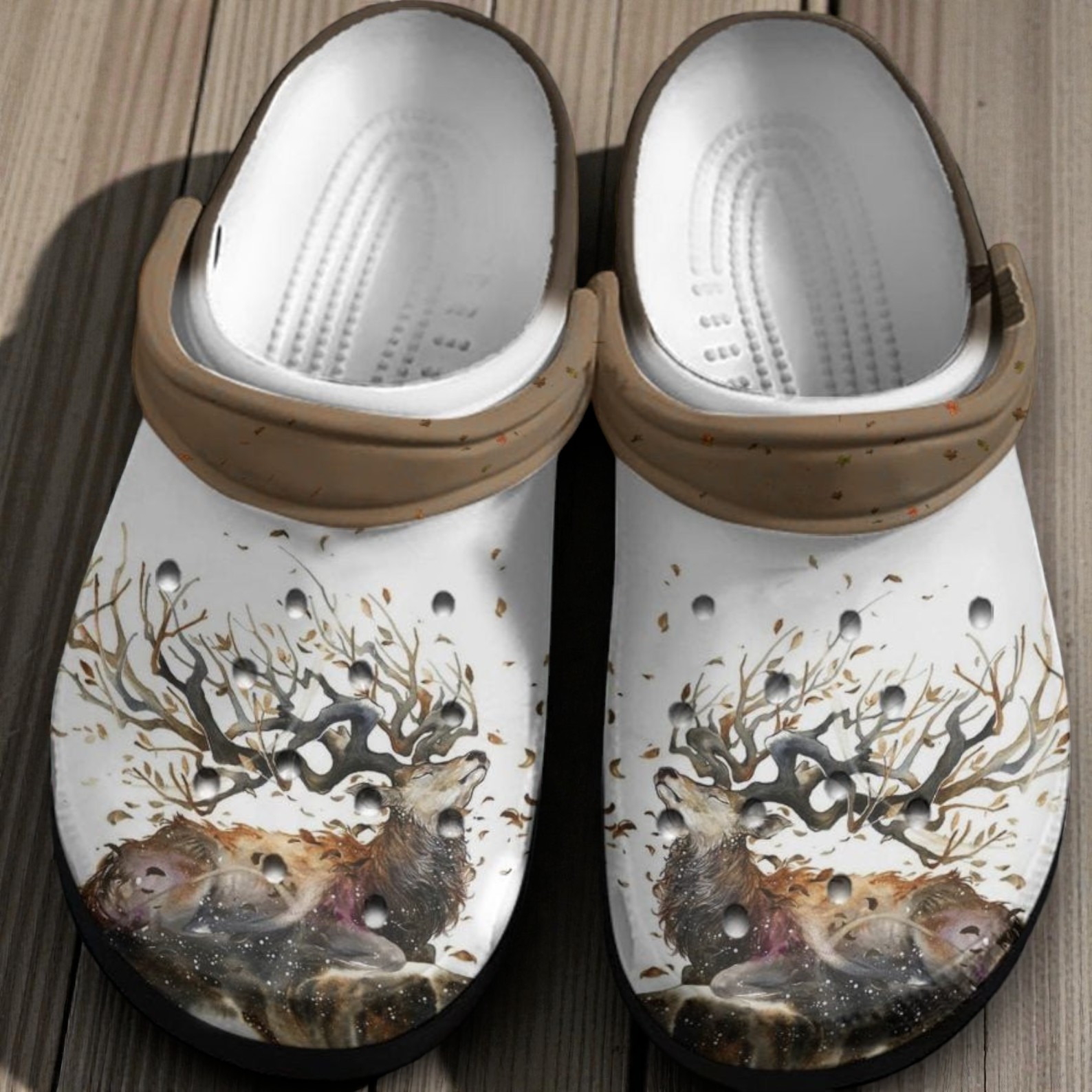 For those who find peace in the woods, these shoes are a beautiful reminder of nature’s quiet moments. We moved away from bold graphics to create something softer and more artistic with these Stag Crocs.
