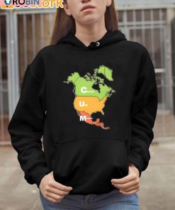 The design of the shirt featuring the map of Canada, USA, and Mexico is vibrant and detailed. The intricate outline of each country is depicted on the shirt, showcasing the unique shapes and borders of Mexico in particular. The colors are bold and eye-catching, adding a fun and stylish element to the overall design. The Mexican portion of the map stands out with its intricate details and vibrant colors, making a statement on the shirt.