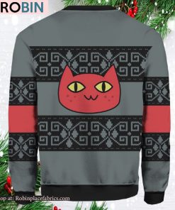 The Marceline Cat Christmas Sweater is a festive and charming sweater that features a cute cat design. The sweater is adorned with adorable illustrations of cats wearing Santa hats and playing with Christmas ornaments. The color scheme is traditional with red, green, and white accents, and the sweater is made of cozy and comfortable material that is perfect for keeping warm during the holiday season. The playful and whimsical design of the Marceline Cat Christmas Sweater makes it a fun and cheerful addition to any holiday wardrobe.