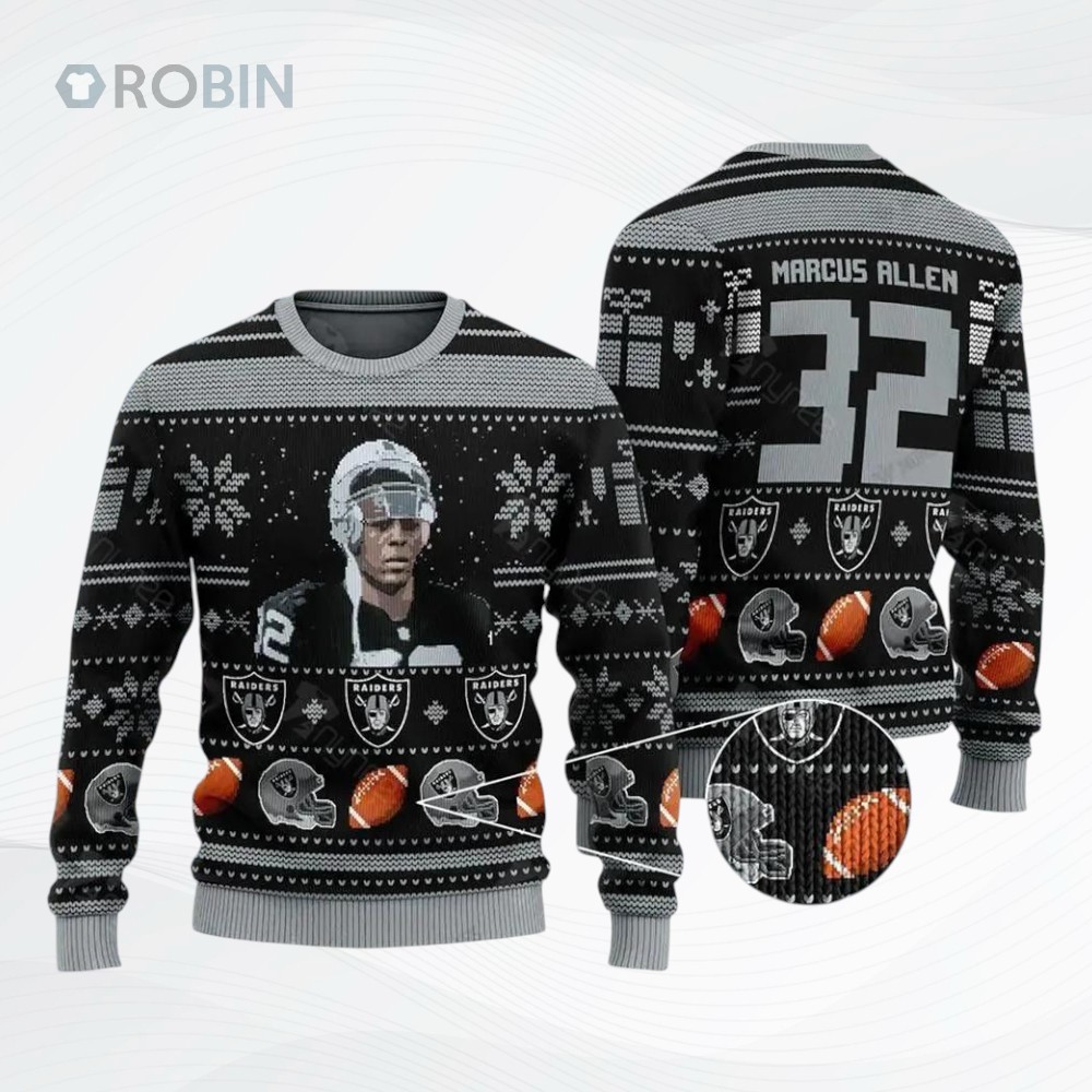 Marcus Lemarr Allen 32 Las Vegas Football Ugly Christmas Sweater, Sweatshirt