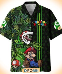 Mario Weed Super Stoned Adult Hawaiian Button Shirt