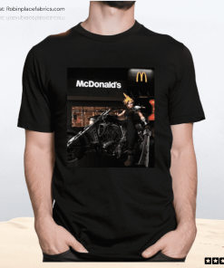 The McDonalds Final Fantasy Kai Cloud Strife Maccas Run Shirt features a striking design inspired by the iconic character from the Final Fantasy series. The shirt showcases a high-quality print of Cloud Strife in action, capturing the essence of his adventurous and determined personality. The bold colors and detailed artwork are sure to make a statement, making it a must-have for fans of the game and collectors alike. With its comfortable fit and unique design, this shirt is perfect for showcasing your love for both McDonalds and Final Fantasy in a stylish and eye-catching way.