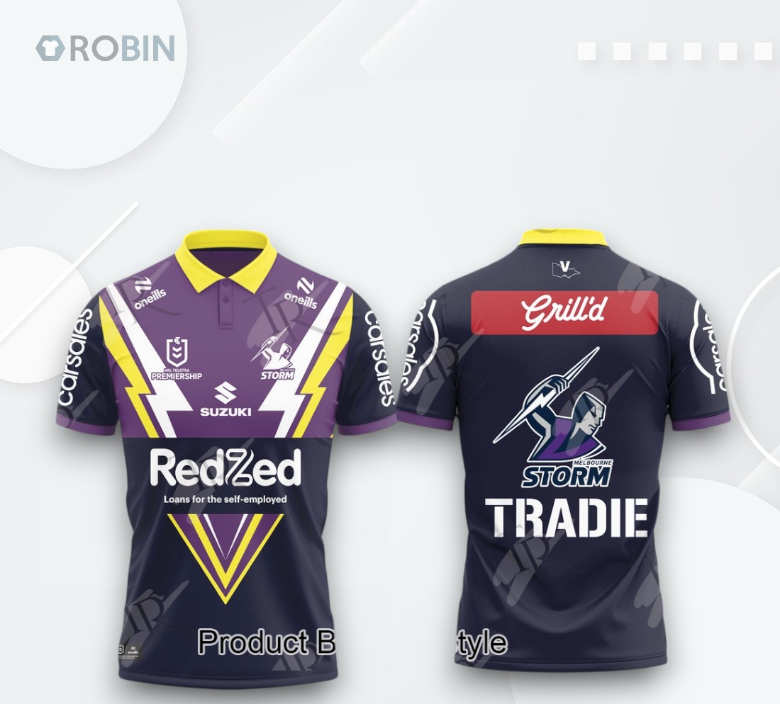 Rep your city and your team! This polo shirt blends Melbourne vibes with Storm pride. A fresh design for the 2025 season. Perfect for game day or everyday wear. Show your support in style! Available now.