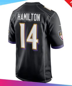 Men's Baltimore Ravens Kyle Hamilton Nike Black Player Game Jersey details