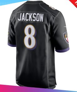 Men's Baltimore Ravens Lamar Jackson Black Game Jersey details